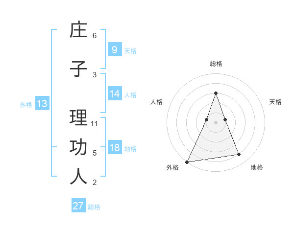 庄子 理功人さんの外格は13画の5点!