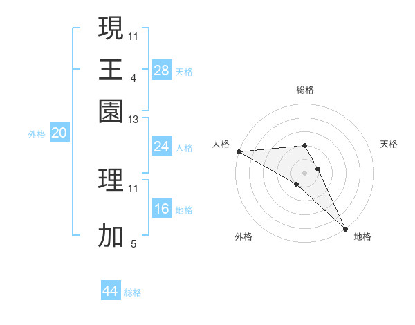 現王園 理加さんの総格は44画の2点!