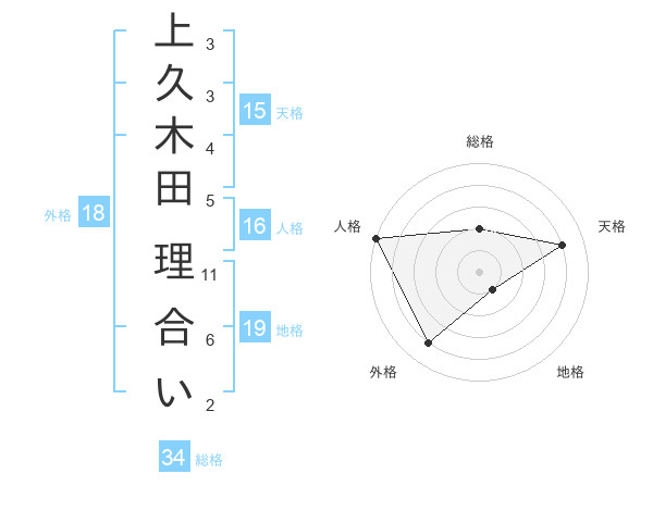 上久木田 理合いさんの天格は15画の4点!