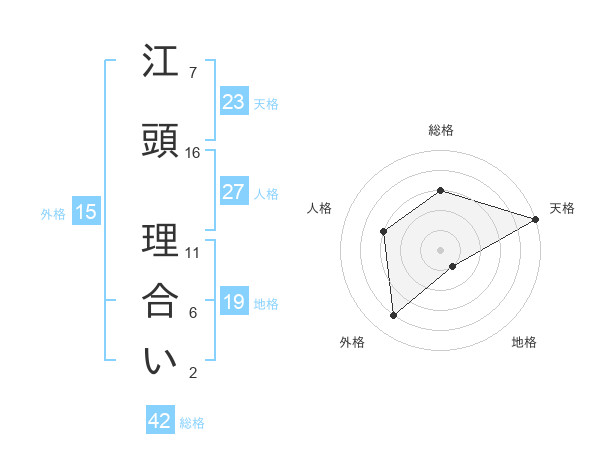 江頭 理合いさんの天格は23画の5点!