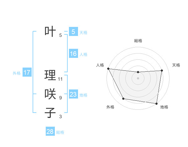 叶 理咲子さんの天格は5画の4点!