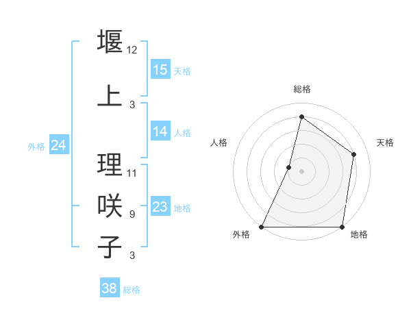 堰上 理咲子さんを姓名の画数から五運を鑑定