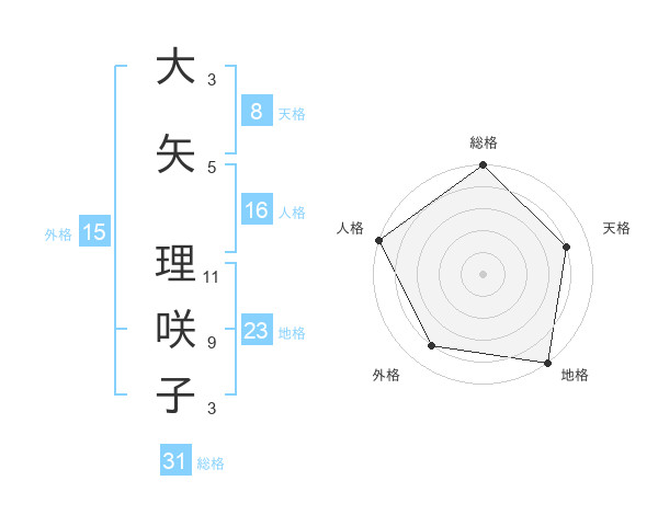 大矢 理咲子さんを姓名の画数から五運を鑑定