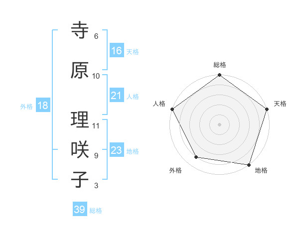 寺原 理咲子さんの天格は16画の5点!