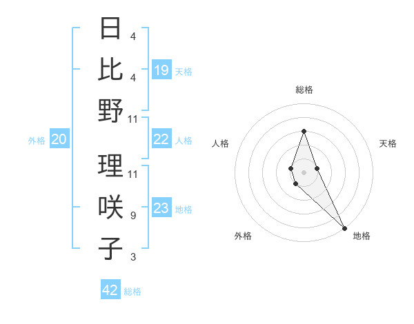 日比野 理咲子さんの総格は42画の3点!