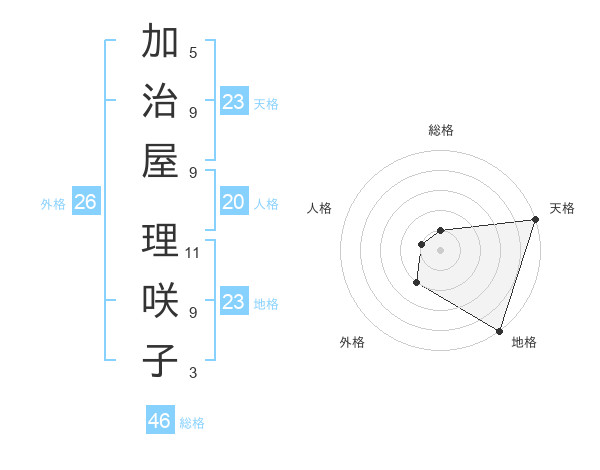 加治屋 理咲子さんの天格は23画の5点!