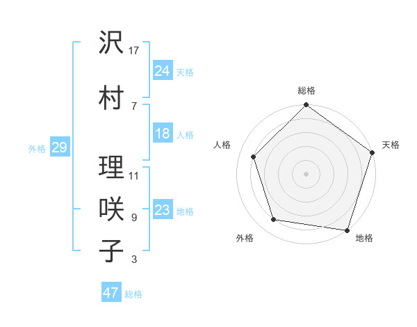 沢村 理咲子さんの総格は47画の5点!