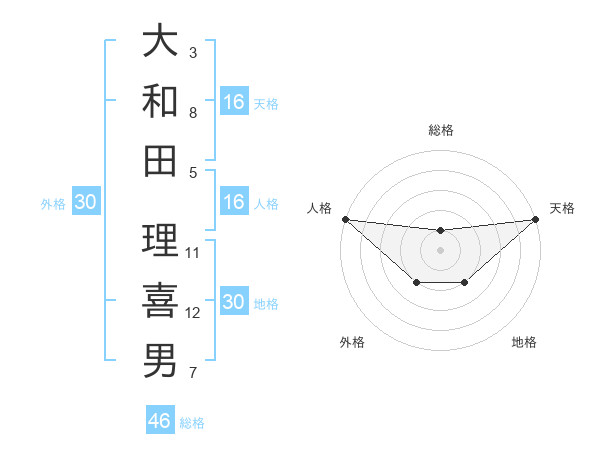 大和田 理喜男さんを姓名の画数から五運を鑑定