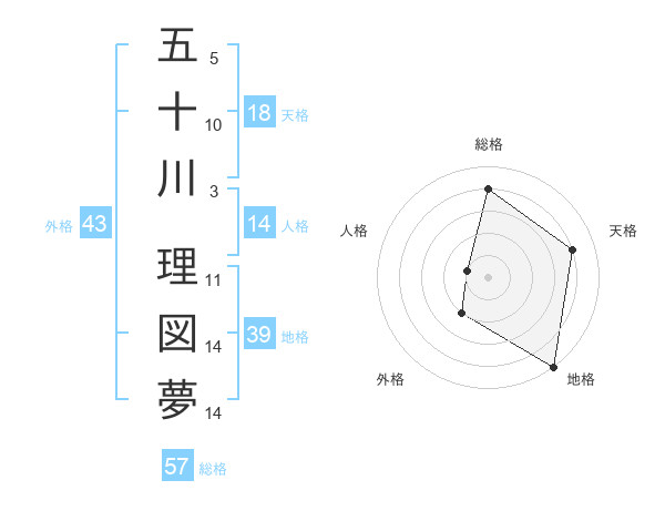 五十川 理図夢さんの総格は57画の4点!