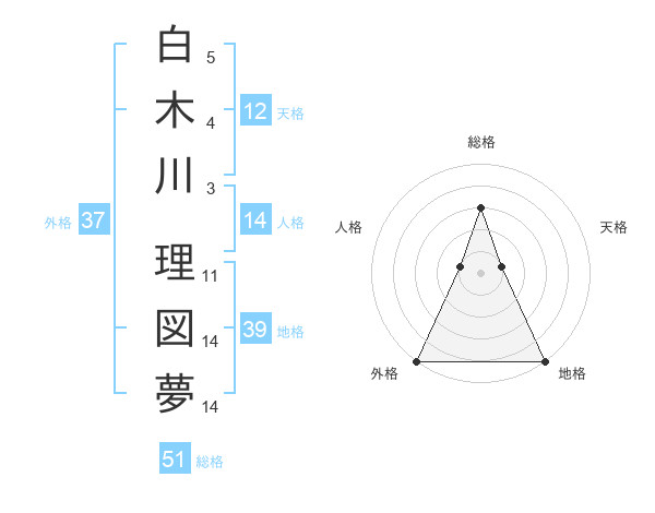 白木川 理図夢さんを姓名の画数から五運を鑑定