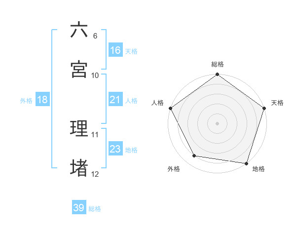 六宮 理堵さんの総格は39画の5点!