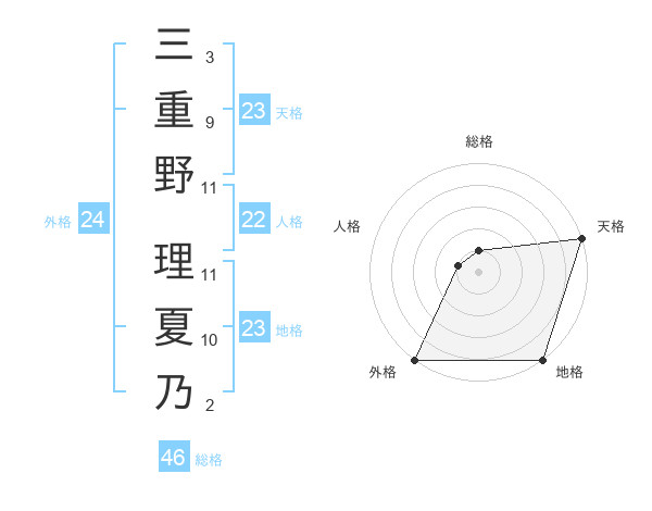 三重野 理夏乃さんの総格は46画の1点!