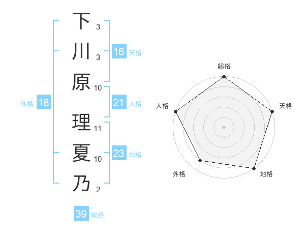 下川原 理夏乃さんを姓名の画数から五運を鑑定