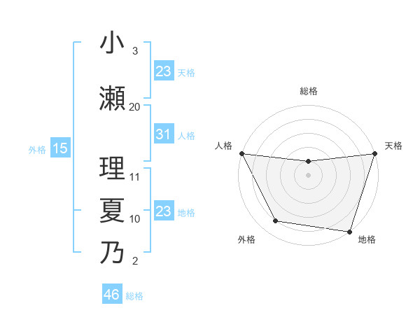 小瀬 理夏乃さんを姓名の画数から五運を鑑定