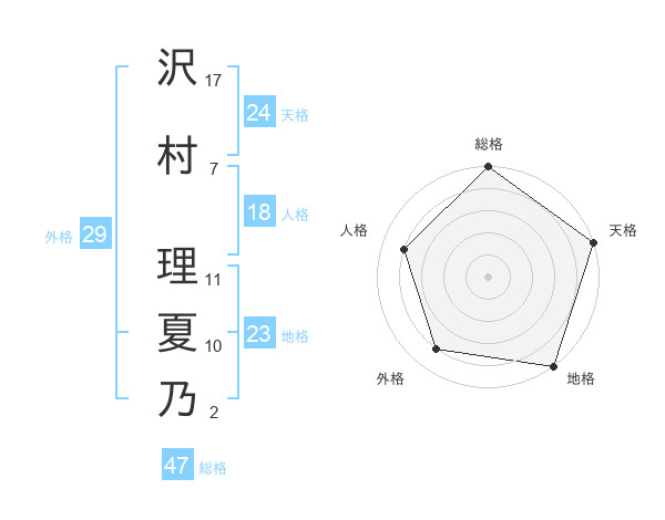 沢村 理夏乃さんの総格は47画の5点!