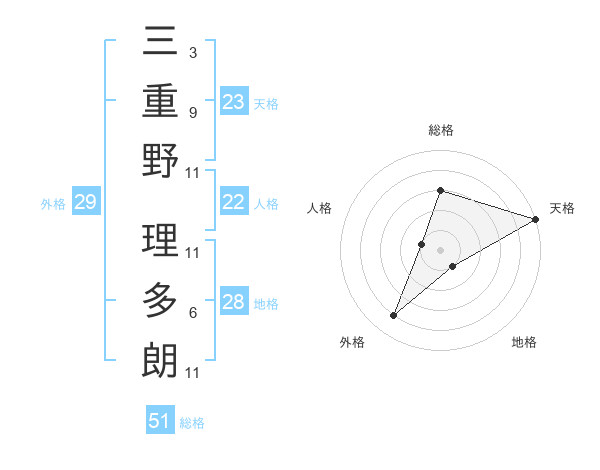 三重野 理多朗さんを姓名の画数から五運を鑑定