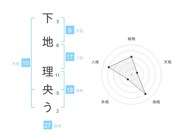 下地 理央うさんの総格は27画の3点