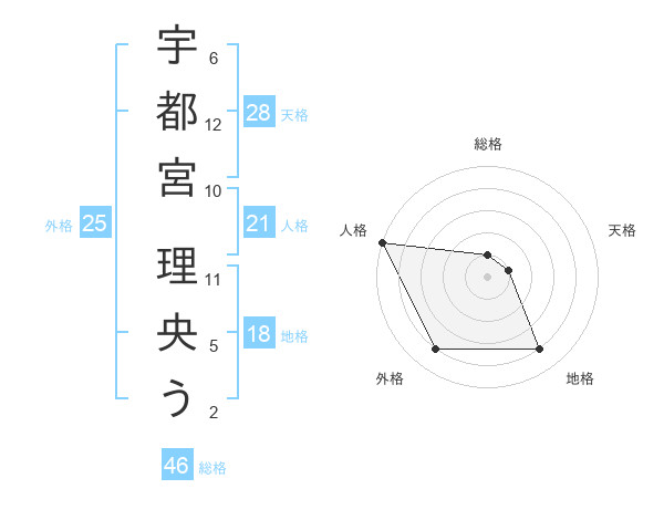 宇都宮 理央うさんを姓名の画数から五運を鑑定