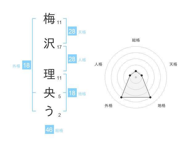 梅沢 理央うさんを姓名の画数から五運を鑑定