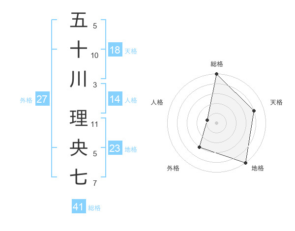五十川 理央七さんを姓名の画数から五運を鑑定