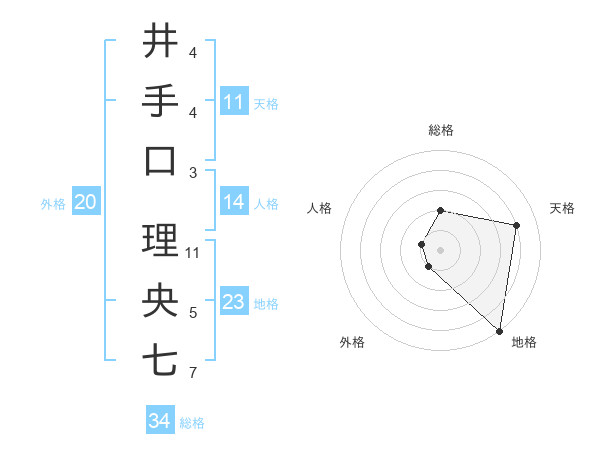 井手口 理央七さんを姓名の画数から五運を鑑定