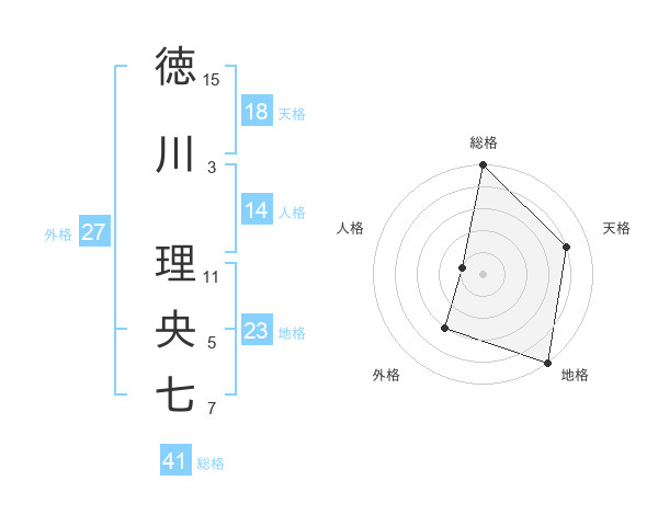 徳川 理央七さんの総格は41画の5点!