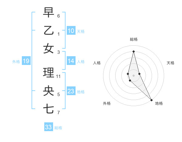 早乙女 理央七さんを姓名の画数から五運を鑑定
