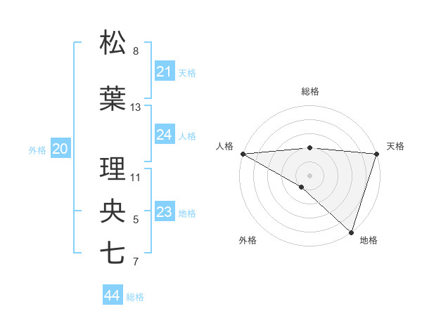 松葉 理央七さんの天格は21画の5点!