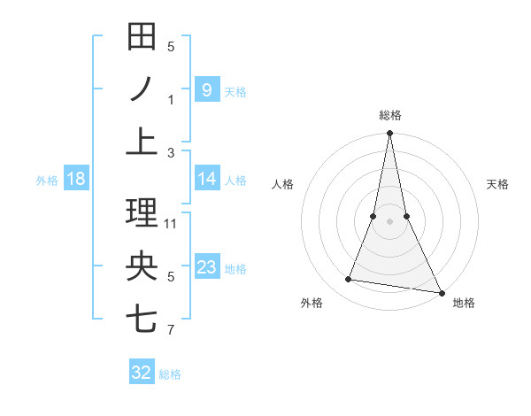 田ノ上 理央七さんを姓名の画数から五運を鑑定