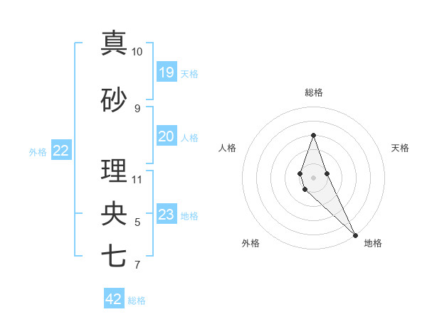 真砂 理央七さんの地格は23画の5点!