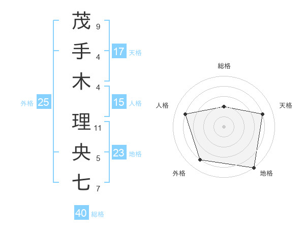 茂手木 理央七さんを姓名の画数から五運を鑑定