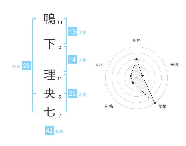 鴨下 理央七さんの総格は42画の3点!