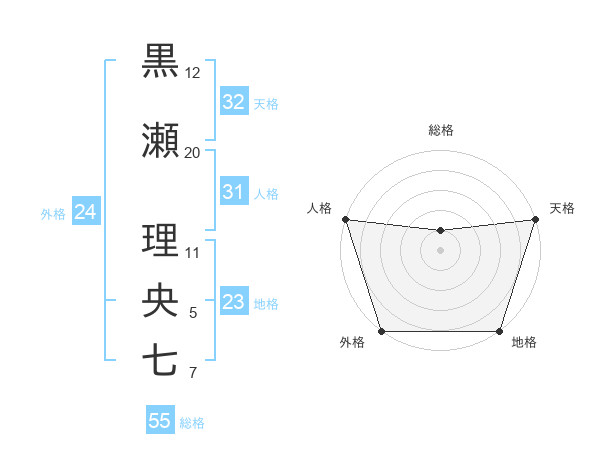 黒瀬 理央七さんを姓名の画数から五運を鑑定