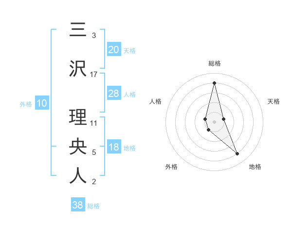 三沢 理央人さんを姓名の画数から五運を鑑定