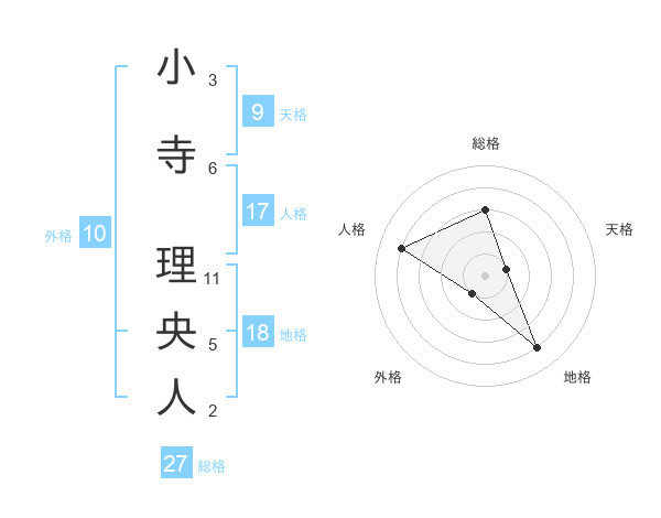 小寺 理央人さんの総格は27画の3点!