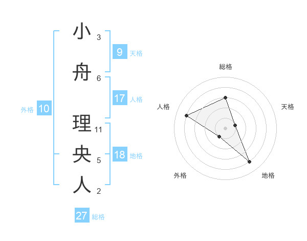 小舟 理央人さんを姓名の画数から五運を鑑定