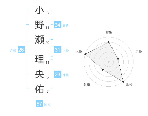小野瀬 理央佑さんを姓名の画数から五運を鑑定