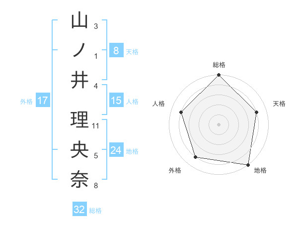 山ノ井 理央奈さんを姓名の画数から五運を鑑定