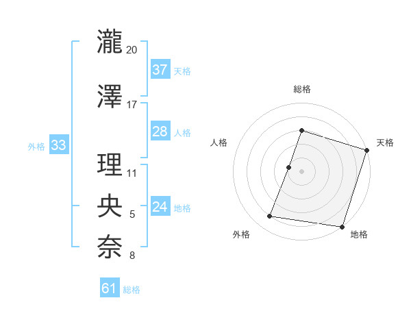 瀧澤 理央奈さんを姓名の画数から五運を鑑定