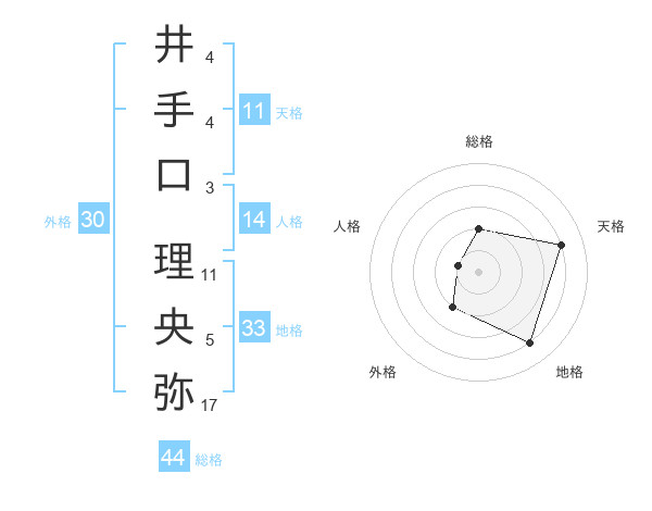 井手口 理央弥さんを姓名の画数から五運を鑑定