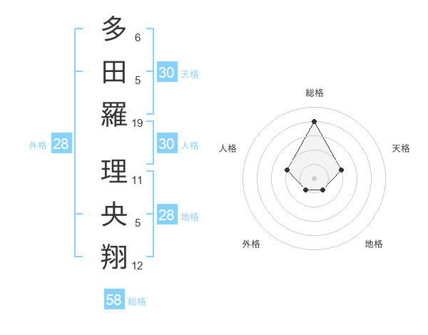 多田羅 理央翔さんを姓名の画数から五運を鑑定