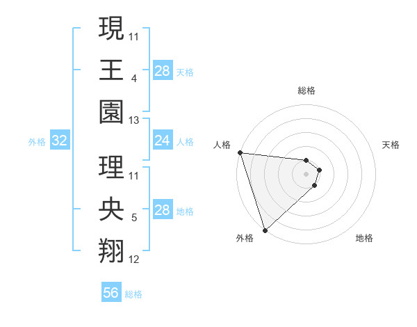 現王園 理央翔さんを姓名の画数から五運を鑑定