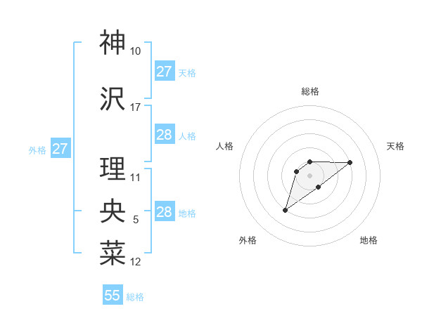 神沢 理央菜さんの総格は55画の1点!