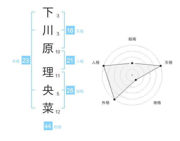 下川原 理央菜さんを姓名の画数から五運を鑑定