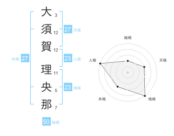 大須賀 理央那さんの総格は50画の2点!