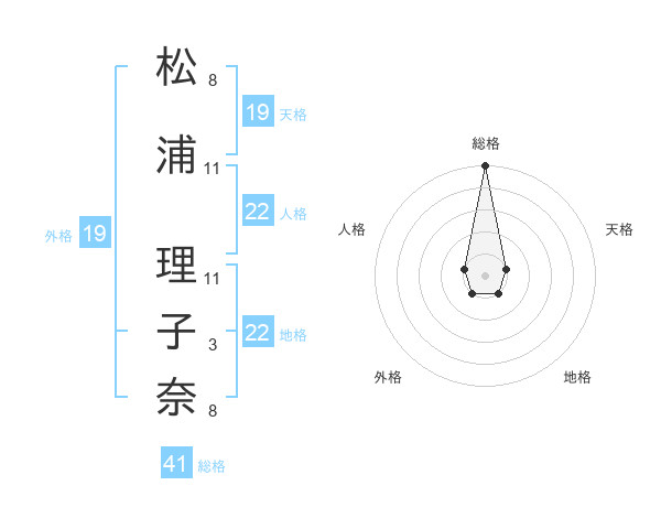 松浦 理子奈さんを姓名の画数から五運を鑑定