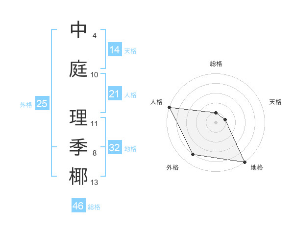 中庭 理季椰さんを姓名の画数から五運を鑑定