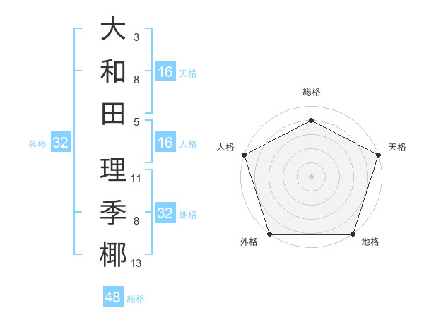 大和田 理季椰さんを姓名の画数から五運を鑑定