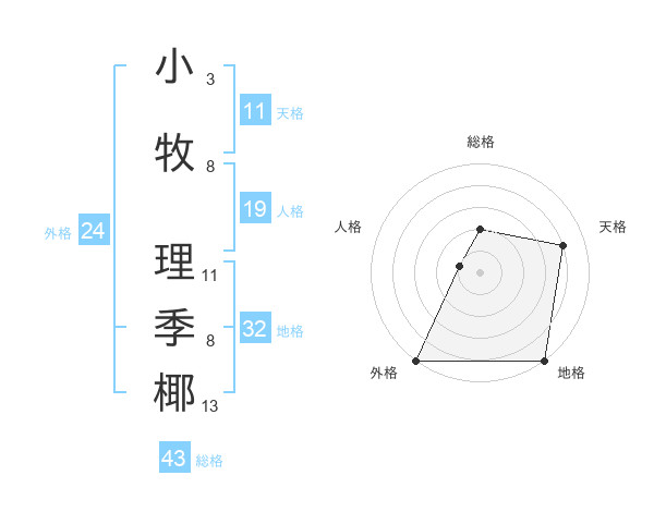 小牧 理季椰さんを姓名の画数から五運を鑑定