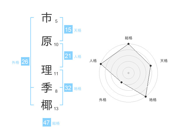 市原 理季椰さんの総格は47画の5点!